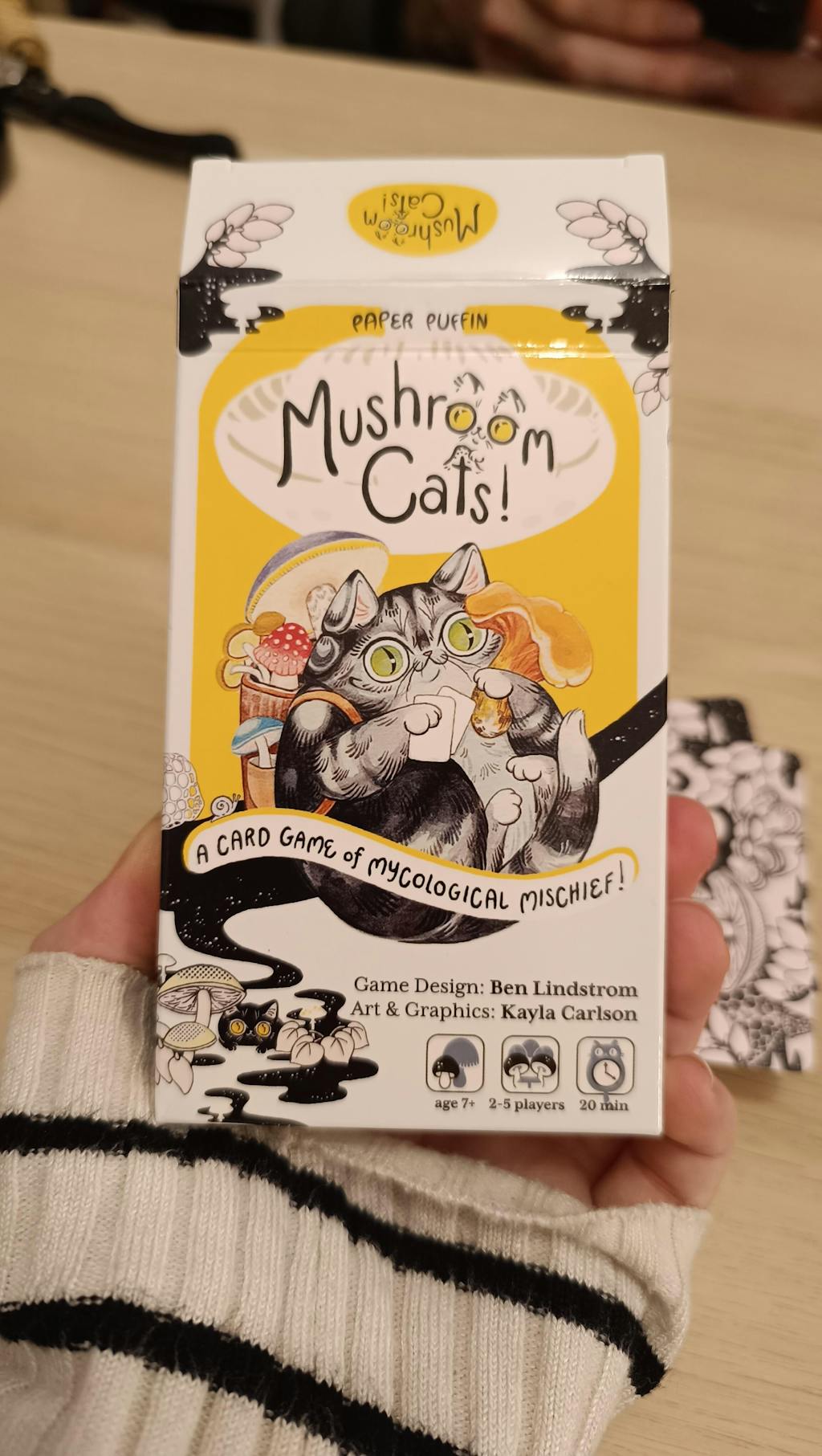 Mushroom Cats! was designed by Ben Lindstrom, and all the art and design for Mushroom Cats! is by PNW artist Kayla Carlson / PaperPuffin